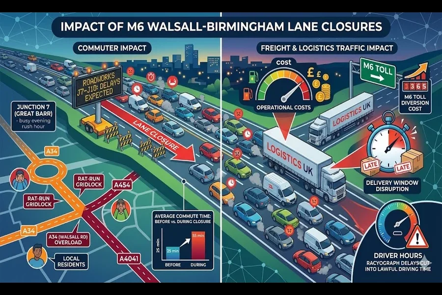Some junctions are particularly tricky. Spaghetti Junction (J6) can gridlock in minutes, and Junction 9 in Walsall often spreads delays into local roads. Knowing alternative routes helps—A34 is direct but busy, the A41 and local roads can avoid congestion, and the M6 Toll is a quieter, paid option.